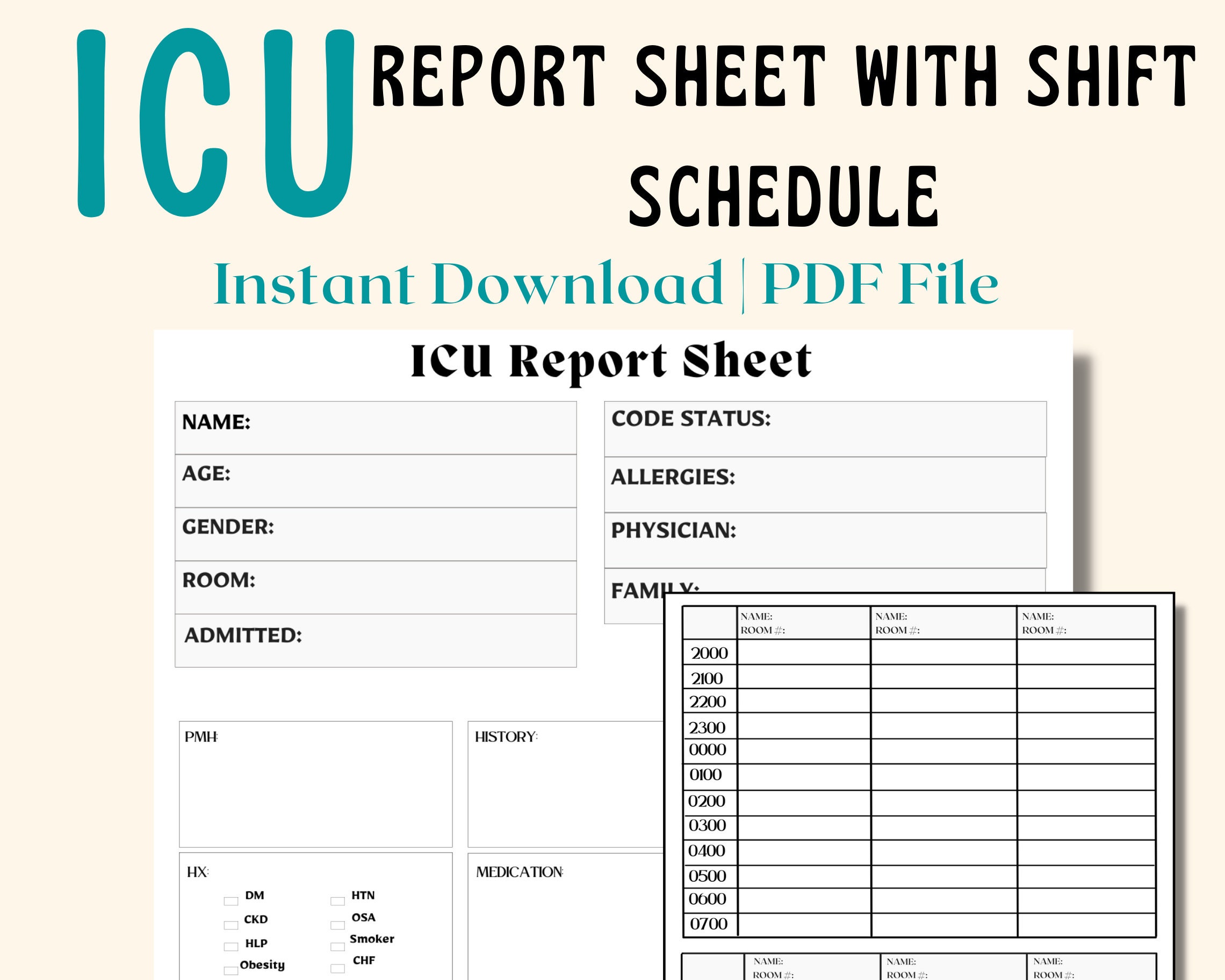 Icu Report Sheet Icu Brain Sheet Nurse Report Sheet Etsy Australia